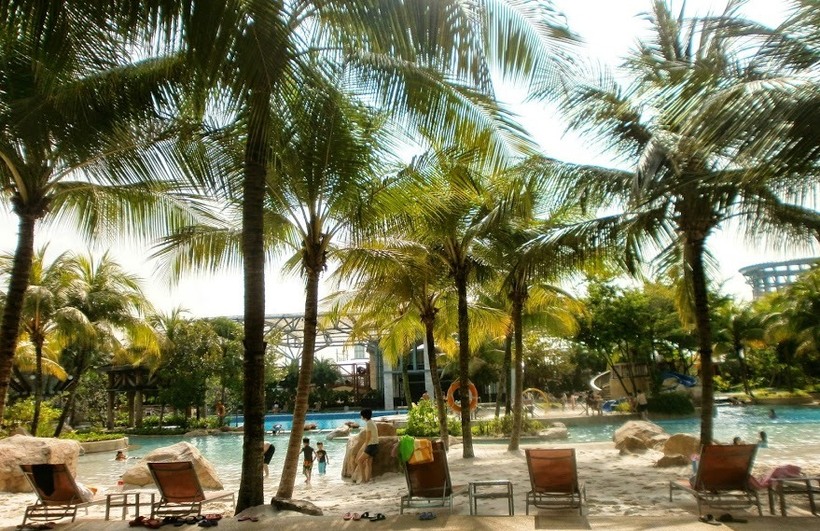 На Сентозе лучше конечно жить в одном из отелей которые есть на острове, так как не нужно ездить с Сингапура. К тому же постояльцы отелей на Сентозе могут бесплатно ездить на монорельсе, неограниченно, например в Сингапур или из Сингапура. Еще преимущества постояльцев отелей на Сентозе это что в любой момент можешь пойти на аттракционы, без привязки ко времени. Лучшее время это конечно с утра, пока мало людей. Мы жили на Сентозе неделю в Фестив отеле. Иногда ходили в Хард Рок отель посмотреть живое выступление, которое есть в холе отеля.