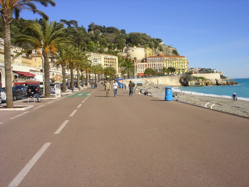 - Английская набережная - без нее не обходится ни одна экскурсия по Ницце. Длина ее около 6 км, это любимое место туристов и местных для неспешных прогулок и занятий спортом. Очень много людей занимаются тут бегом или едут на велосипедах, но это совсем не мешает, так как набережная широкая и имеет выделенные полосы движения. Даже просто пройдя несколько километров по набережной, можно увидеть много красивых зданий и знаменитых на весь мир отелей, например, Негреско.