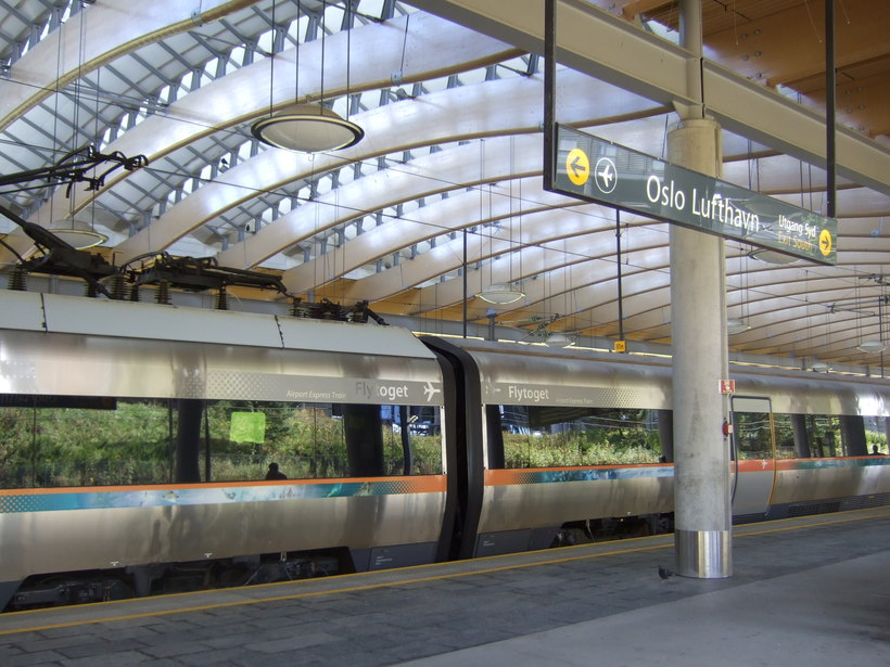 Вы не написали, из какого аэропорта. Если вы имеете в виду Гардермуэн, то удобнее всего, мне кажется, добираться на электричке. Можно за 20 минут доехать экспрессом Flytoget, который ходит каждые 10 минут. А можно простой электричкой (через Гардермуэн проходят поезда из Эйдсволла и Лиллехаммера), которая ходит пореже и едет чуть-чуть подольше, зато стоит на 90 крон дешевле. Когда пойдёте в аэропорту к поездам (там понятно, куда идти, есть указатели), увидите автоматы по продаже билетов: оранжевые -- на экспресс, красные -- на проходящие электрички. Выберите меню на английском и действуйте по указаниям автомата. Можно платить наличкой (норв. кронами), можно банковской картой. Если вам в район ж/д вокзала, едете до Oslo S, если в центр города -- до Nationaltheatret.