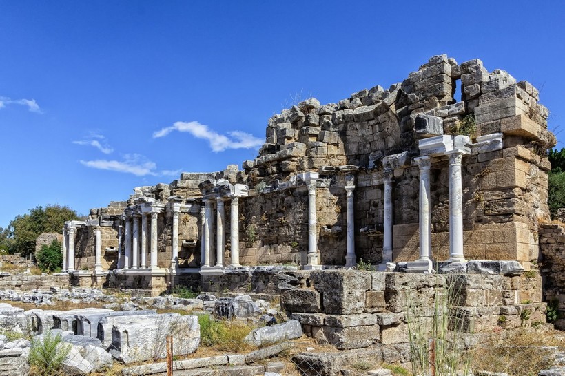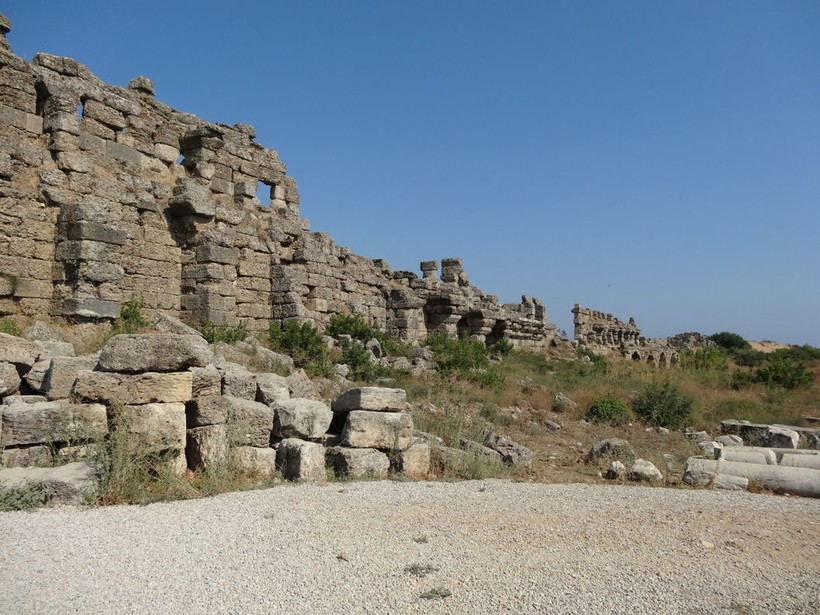 На территории Сиде находится разрушенный временем античный город, его можно осмотреть самостоятельно, без спешки и толкотни. Лучше ехать утром или вечером, чтобы людей было поменьше, днем и туристические автобусы съезжаются, и жара стоит, а укрыться от ее особо не где.