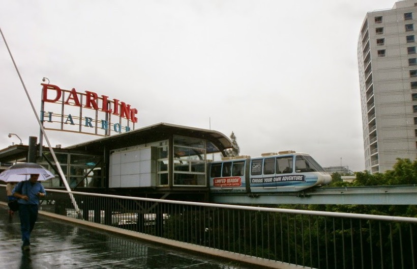 Если вы будете в Сиднее день, то вам лучше заранее найти гида, и заказать обзорную экскурсию по Сиднею, это вам сохранит много времени и соответственно посмотреть можно намного больше. А так рано утром можно для начала проехаться на монорельсовой дороге, она не большая, но зато даст представление как устроен центр Сиднея, кстати уникальный снимок, в Сиднее идет дождь.