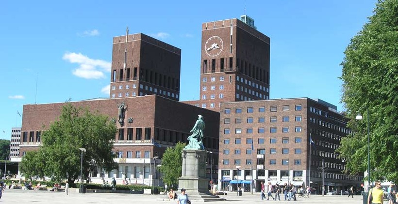 Городская Ратуша г. Осло (Норвегия) - место проведения Церемонии Вручения Нобелевской Премии в области защиты мира.