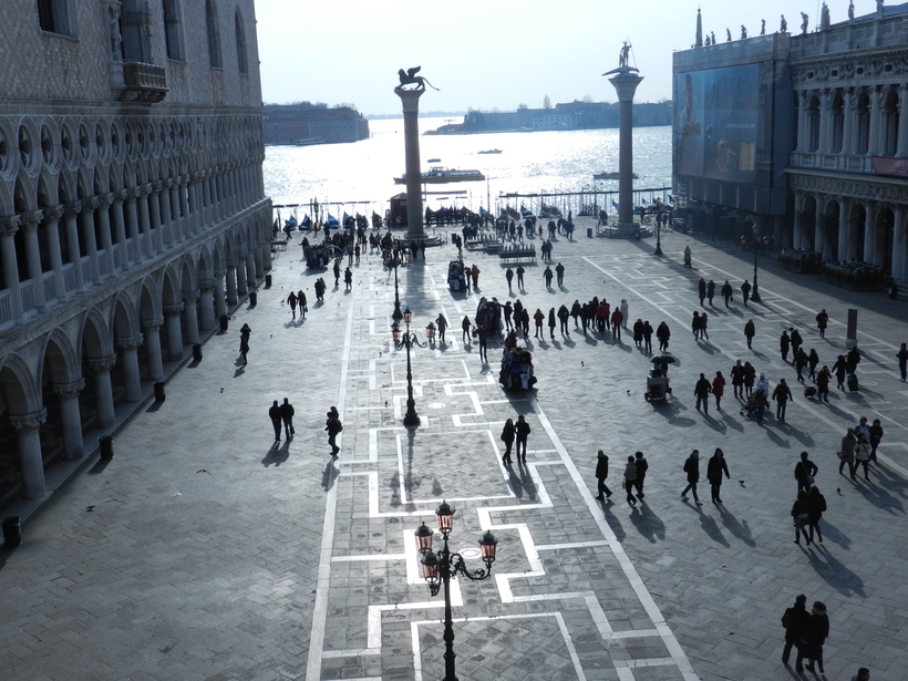 Могу по своему опыту сказать, что в Венецию поехать можно в любое время. То есть зимой, конечно, туристов намного меньше (кроме времени карнавала), и это видно на фото, сделанном 29 января. На этой фотографии (сделанной 29 января) хвост очереди в Собор Св. Марка, изгибающейся зигзагами, находился бы где-то за пределами видимости — в районе берега канала.