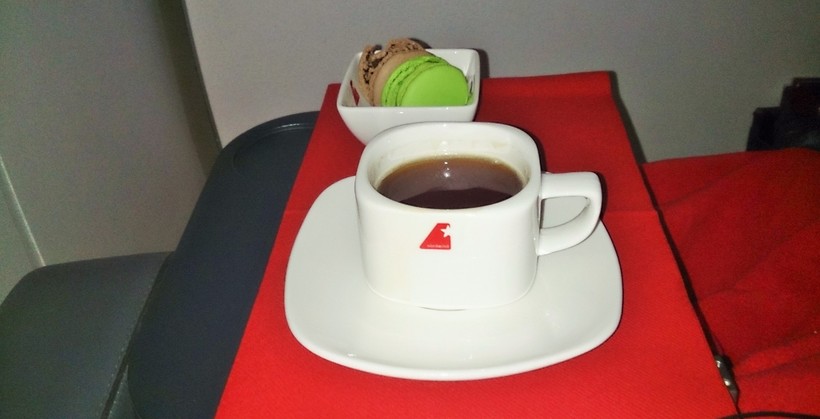 Кресла в самолете были достаточно удобными, правда, не работало индивидуальное освещение и кнопка вызова бортпроводника. Еду подавали два раза, но она мне совсем не понравилась, сложилось впечатление, что она совсем несвежая, а пролежала в холодильнике около недели точно. Из предложенного я практически ничего не съела, только попила чай с макарунами.