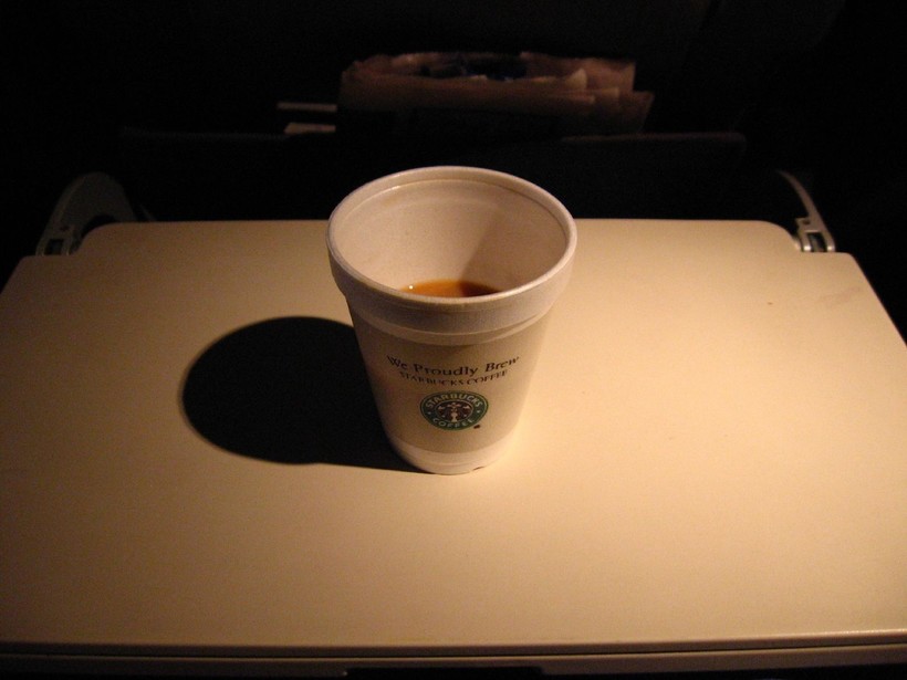 Что мне безумно понравилось, так это брендированная посуда, сахарные пакетики и салфетки. Даже на пластмассовой чашечке был значок авиакомпании.