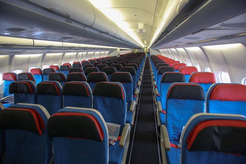 - старенький самолет с потертыми сидениями;