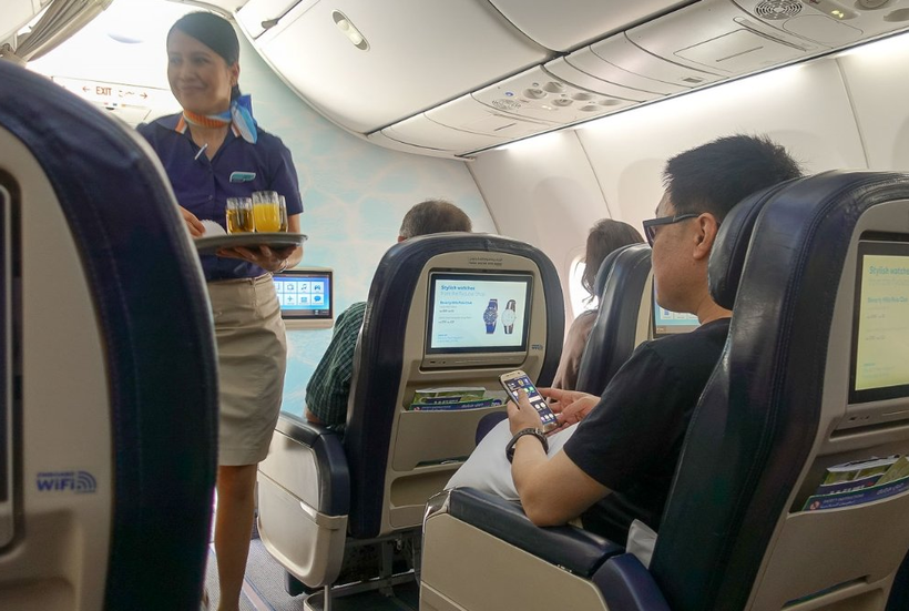 По питанию на борту мне добавить нечего, выше уже все писали (кроме того, что дают бесплатный алкоголь – мужики, учтите это!). Да, пожалуй, скажу насчет бортпроводников – это могут быть арабы, индусы – кто угодно, но не славяне. Так что учите английский!