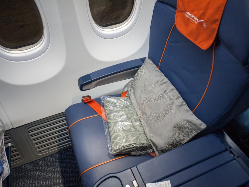 Что касается самолета, то он был не новый. Коврики были зачищены, обивка на креслах уже нормально так поношена. В целом состояние не очень.