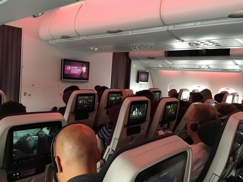 - перед каждым пассажиром в сиденье был встроен сенсорный экран с возможностью смотреть фильмы и карту.