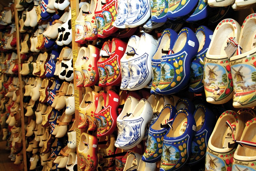 - Из необычных сувениров, которые вы точно больше нигде не встретите, лучше всего подойдут деревянные башмаки (кломпы). Носить их вряд ли вы будете, но башмачок с надписью по вашему заказу не оставить равнодушным. Башмаки продаются на каждом шагу, но вот нанесут надпись какую вы захотите далеко не везде, лучше отправляйтесь сразу в магазин «De Klompenboe» (он находится на месте бывшей станции метро).