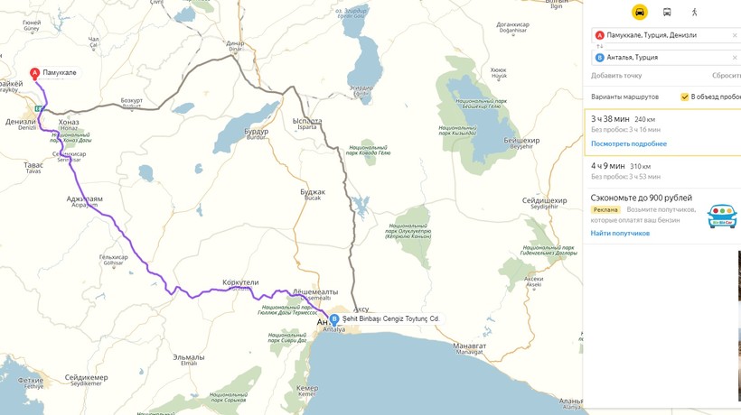 От Анталии до Памуккале 240 км. На экскурсионном автобусе ехать около 3,5 часа