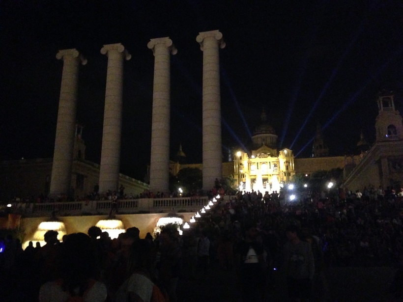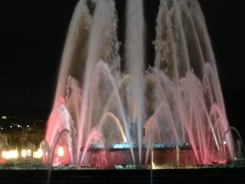 Поющие фонтаны находятся на подножии горы Монжуик вниз по лестнице от Национального Музея Искусств Каталонии. Добраться лучше на метро и подняться на гору пешком. Зрелище красивое, но не настолько захватывающее как мы ожидали. Единственный минус, наверно, это то, что совсем плохо слышно музыку из за шума плещущейся воды. Но в целом игра света и брызг может неплохо скрасить ваш вечер в этом потрясающем городе.