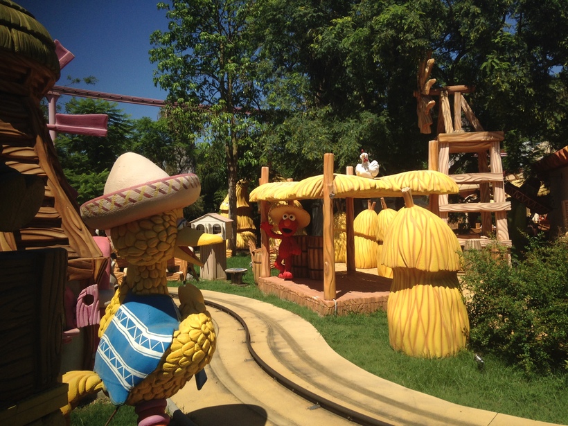 Так что я думаю никто не останется равнодушным в этом парке: ни любители острых ощущений, ни детки 5-летнего возраста. К слову, парк поделен на несколько тематических зон, одна из которых зона посвященная "Улице Сезам" (прикрепила фотографии как раз специально только из этой зоны). Современные дети, конечно, я думаю не знакомы с передачей нашего (ну моего точно) детства, но им однозначно понравятся детские аттракционы, декорации, "живые" мультяшки и шоу. Много так же неопасных но очень веселых семейных аттракционов с плеском воды и стрелялками из водных пистолетов.