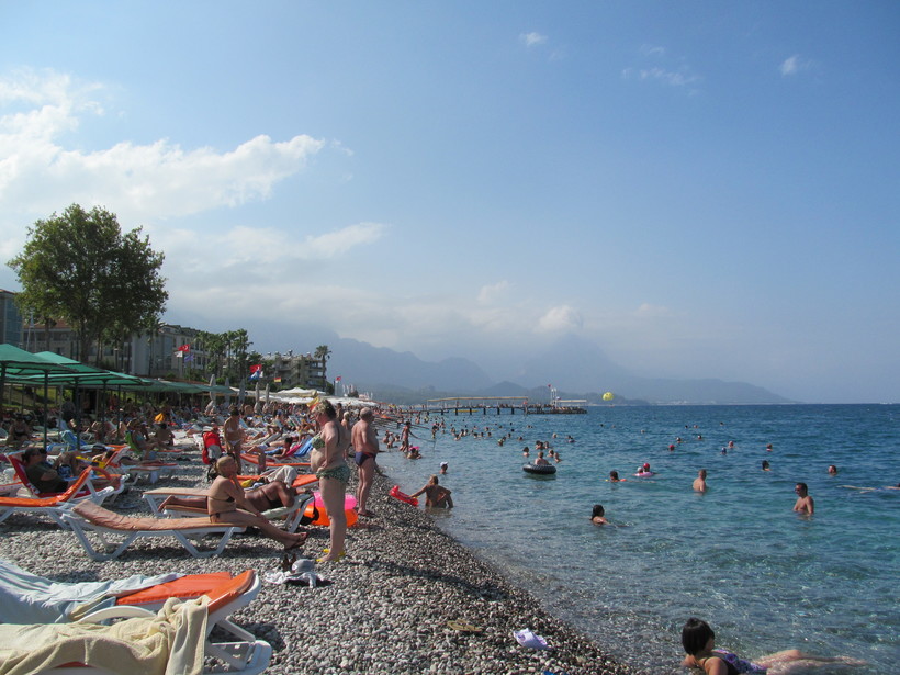 По сути все побережье в Кемере является муниципальным пляжем, но разбито на части "владениями" отелей. Для туристов этих отелей шезлонги бесплатны, для всех остальных - лежак стоит 1 Доллар на весь день. Если платить не хочется или не видите в этом смысла, в любом понравившемся месте расстилаете полотенце и загораете в своё удовольствие :)