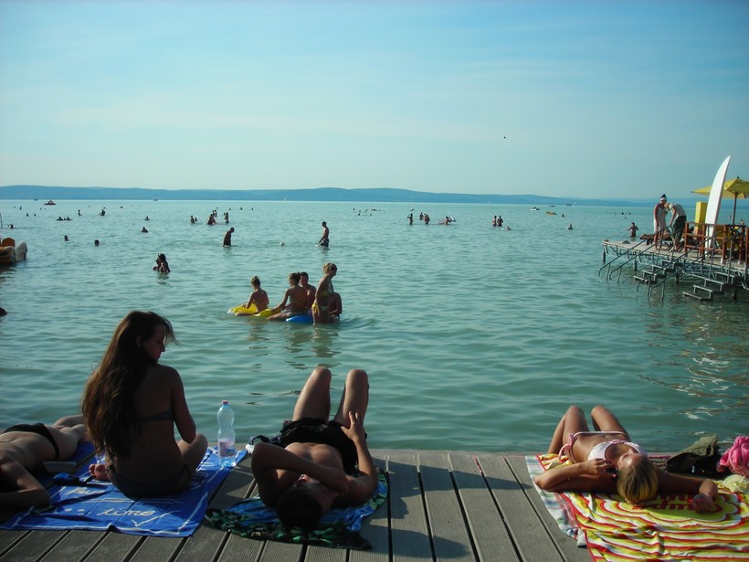 В августе на Балатоне уже достаточно тепло, чтобы позагорать.