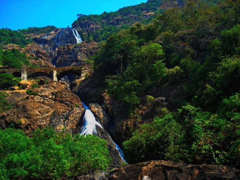 Честно говоря, апрель – не лучший месяц для экскурсий. Если вы хорошо переносите тропический климат, полны сил, а от вида пляжа и пальм вам становится нехорошо, отправляйтесь к водопаду Dudhsagar в заповедник Бхагван. Он входит в сотню самых высоких водопадов мира, помимо размеров, меня поразили кипенно-белые брызги Дудхсагара. Вокруг очень много мартышек, которые отчаянно клянчат у туристов лакомства. Дразнить их не стоит, обезьянки быстро свирепеют.