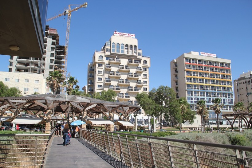 Повышенная влажность сбила с толку по прибытии... Температура к полудню поднималась до +28 градусов. Совсем не жарко. Как раз тепло, согласитесь. Но из-за духоты, температура казалась намного выше. Спасибо ветру со стороны моря, спасал меня ежедневно. Находиться в обеденное время на улице было сложно. Хотелось пересидеть дневной зной под кондиционером. Вечером температура падала до +22. Увидев такой прогноз, я набрала из дома кофточек... Но поскольку влажность оставалась непоколебимой, то ощущение прохлады и свежести не пришло ни разу. Дышать тут в начале лета нечем даже после заката. Лучше ехать в Нетанию в апреле, мае. А вот море меня огорчило. Водичка еще плохо прогретая, всего +22. Да, продолжительность светового дня 12 часов. Темнеет в городе рано. Уже в 19.00 опускается непроглядная ночь.