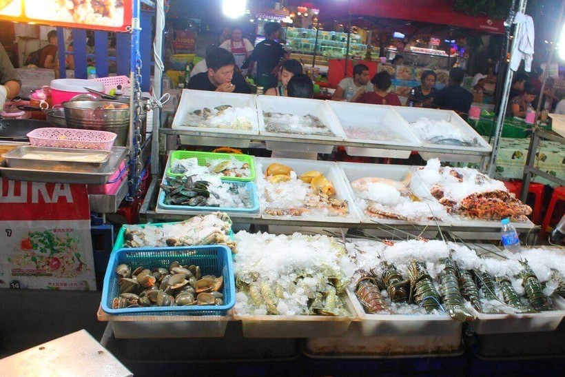 Рынки и лотки, заваленные фруктовыми плодами. Я советую покупать плоды целыми и ни в коем случае не почищенными. С санитарными условиями дела обстоят плохо, фруктики, например, чистятся без предварительной мойки, да и лежать порезанными на солнце и с мухами могут полдня. Немного о ценах: стоимость фруктов стартует от 30 бат. Дешевле всего стоят ананасы — 30 бат за штуку, дороже обойдется саподилла — стоимость за килограмм 200 бат.