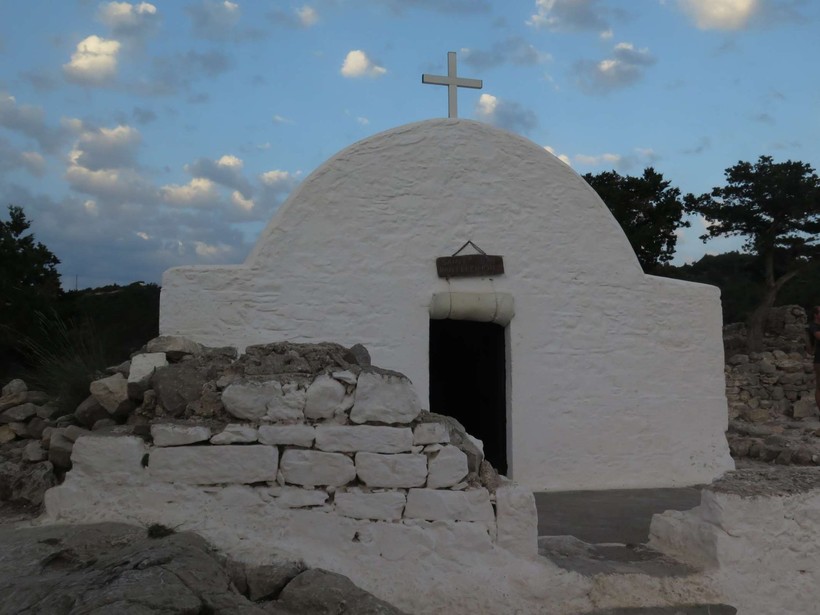 Расскажу кратенько о каждом. Пляж Агати длинный и песчаный. Заход пологий, идеальное место для отдыха с малышами. Есть шезлонги, несколько ларьков с греческим фаст-фудом. На самом краю, в скалах, укрылась небольшая церквушка.