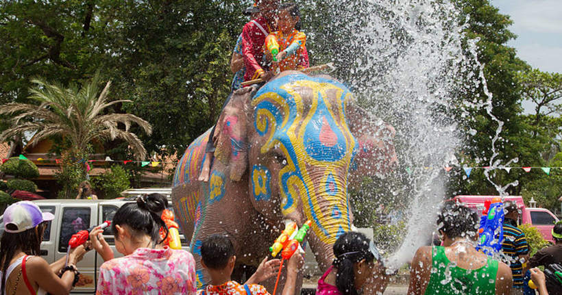 В середине месяца с большим размахом отмечается национальный Новый год — Сонгкран. Это очень веселое мероприятие, все радуются и обливаются водой, смывая грехи таким образом и желая друг другу счастья в новом году, а еще мажутся тальком для защиты от злых духов.