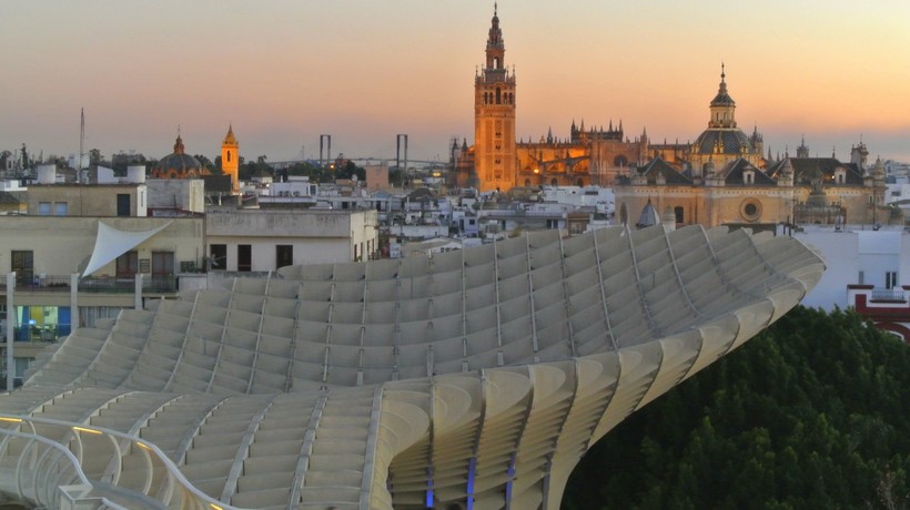 Одним из моих любимых развлечений стало забраться повыше и наблюдать за чудесами, творящимися на небесах. Зимние закаты, около 18:00, удивительны. Они то наполнены красками и драмой, то напоминают мазки акварелью, нанесенные на холст неопытной рукой. Отличные виды открываются со знаменитого испанского гриба Метрополь Парасоль.