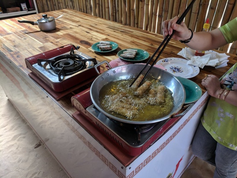 Много цитрусовых и бананов самых разных размеров. Обязательно попробуйте местный стрит-фуд: банх-хео (хрустящий блин), ми-кванг (лапша, приправленная куркумой), гвой-куон (спринг роллы).