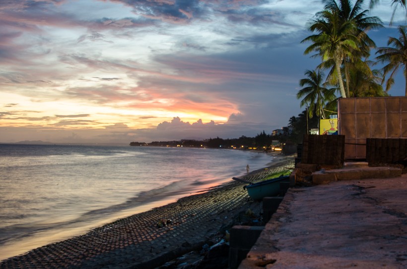 Температура воздуха днем держалась на отметке +30 градусов, а ночью опускалась до +27, но ливни шли каждый день. Дождь был теплым, но гулять в дождливую погоду тяжело. В те периоды, когда не было дождей, я купалась. Вода в море теплая: +29 градусов, но на спокойный пляжный отдых не рассчитывайте. Из-за ливней пляжи пустынны.