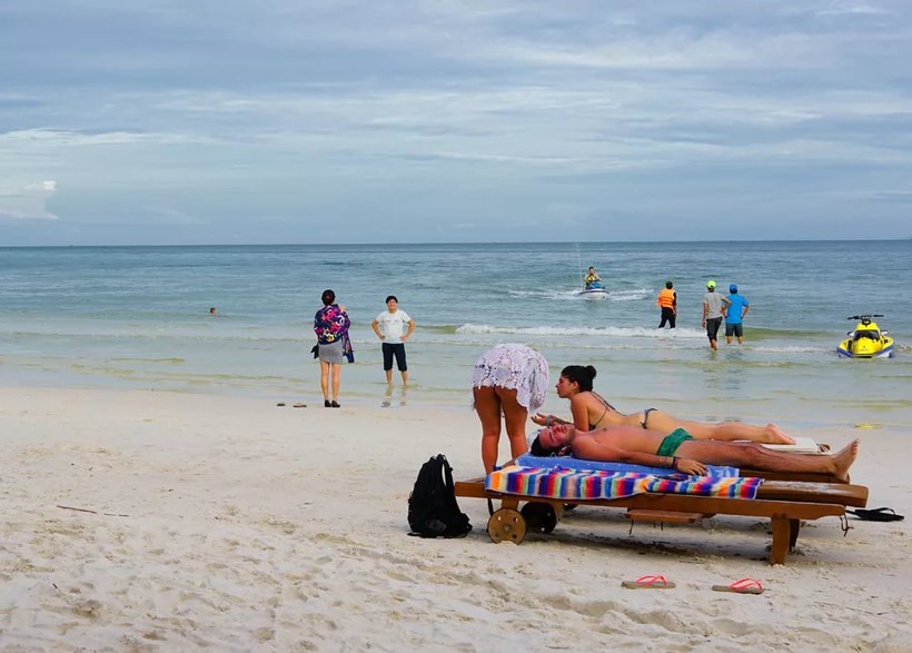 Южно-Китайское море — парное молоко. В августе температура воды достигает высочайшей отметки, составляя 29°C. Я плавала, купалась, ныряла несколько часов подряд. Только обеденный зной вынуждал покинуть пляж. Становилось просто невыносимо, когда воздух нагревался до 32-34°C. Лучший вариант защиты от солнца — качественный крем, тень от кокосовой пальмы, зонтик.