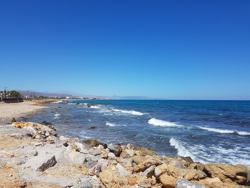 А вот позагорать уже вполне можно. Приливы минимальны. Солнце светит ярко, ветер дует сильно, загар прилипает моментально. Не пренебрегайте солнцезащитными кремами и носите головной убор. Пляжи в Херсосниссосе меня не впечатлили, ходила в Сталиду.