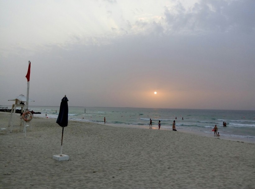 Курорт по прибытии встретил меня погожей погодкой. Было умеренно жарко, немного ветрено и солнечно. Температурка к обеду поднималась до +28. Из-за ветра, конечно, такого тепла я не ощущала. Но загорать мне было комфортно. Да, залив к этому времени прогревается до +23. Вода еще бодрит и освежает. Но плавать терпимо. С закатом в курортном местечке начиналось самое интересное: температура стремительно падала. Ночью тут, оказывается, еще очень холодно. Всего +16. Только представьте, какой здесь температурный перепад! Смеркается в Шардже после 18.00.