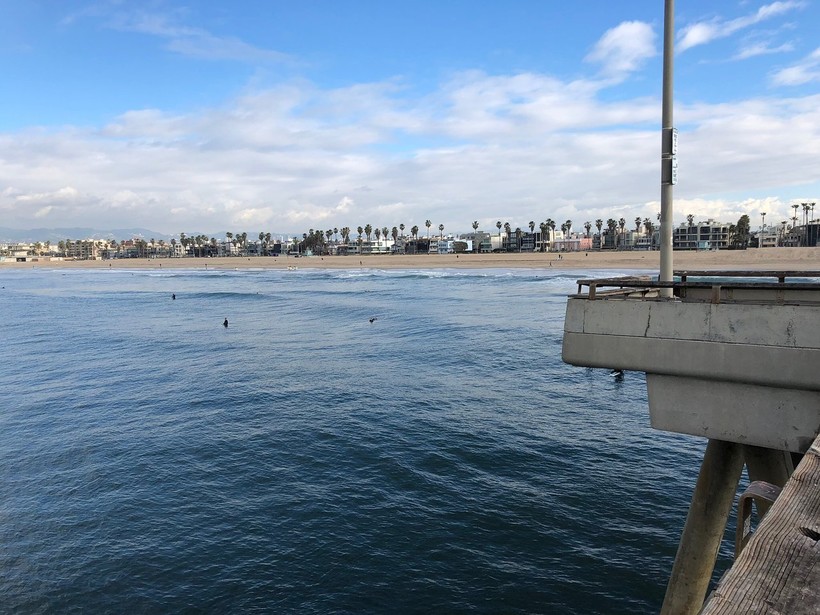 Лос-Анджелес славится многокилометровыми песчаными пляжами. Купальный сезон открывается летом, зимой океан слишком холоден, +15–16. Кроме того, на побережье очень ветрено. Я пловцов не заметила, только серферы в гидриках отважно покоряли волны.