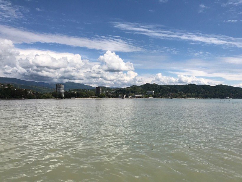Весной в Абхазии можно наблюдать невероятное буйство цвета. Прогулки по городу доставляли мне массу удовольствий. Дни были пропитаны солнцем, морем и свежими фруктами. К частой смене погоды относилась философски, видимо, это сезонная особенность. За день на небе обстановка менялась десятки раз: тучи, солнце, облака мелькали в хаотичном порядке.