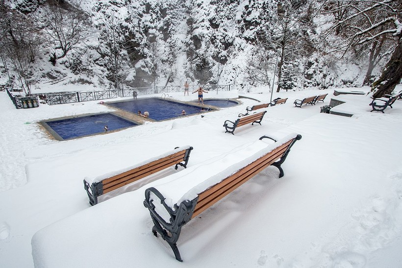 Термальные источники заключены в три бассейна с различной температурой воды. Туристов мало, никто не мешает насладиться ощущениями.