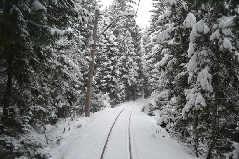 Мы решили, что самым лучшим будет именно сейчас прокатиться по узкоколейке на «Кукушке» до Бакуриани. Снежные склоны Боржомского парка восхитительны. Лапы елей, укутанные снегом, выглядели совсем по-новогоднему. Поезд медленно поднимался вверх, сквозь заколдованный лес. Приближался праздник.