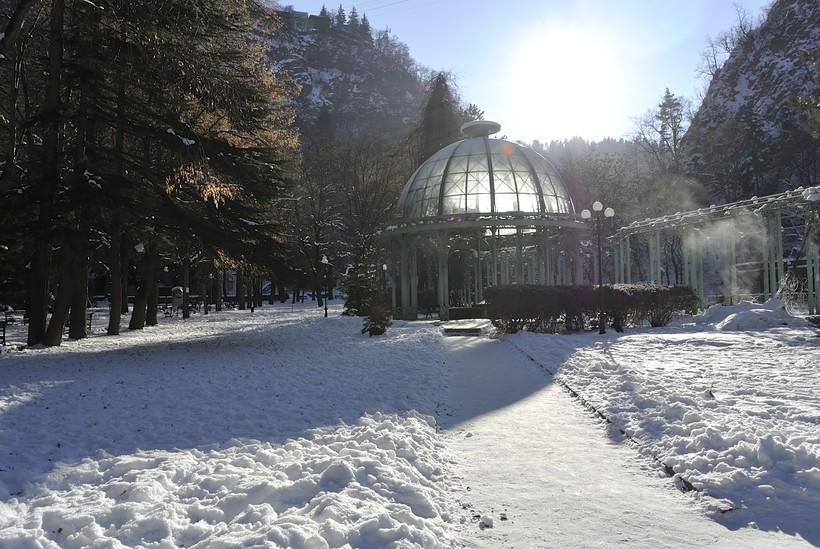 Погуляли, попили минеральной воды, поднялись на гору. Пару раз катались на санях - детский восторг. Погода была почти все время солнечная и слегка морозная.