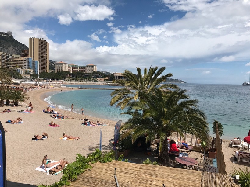 Ларвотто – самый популярный песчаный пляж в Монако. Берег создан искусственно, песок насыпной. Доступ открыт для всех желающих, но имеются частные зоны. Я довольствовалась халявой. Если вы тоже любите загорать бесплатно, в мае на побережье вам понадобятся: