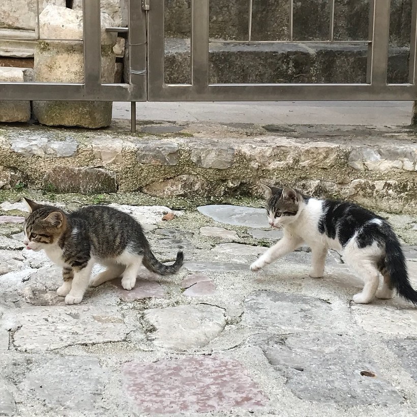По приезде в апреле в Котор первым делом я отправилась в Стари Град. Прогулку начала от Морских ворот и, двигаясь по часовой стрелке, осмотрела все основные достопримечательности: площадь Рук и Мучную площадь, Морской музей, церковь св. Луки и Николая. Компанию мне составил кошачий прайд.