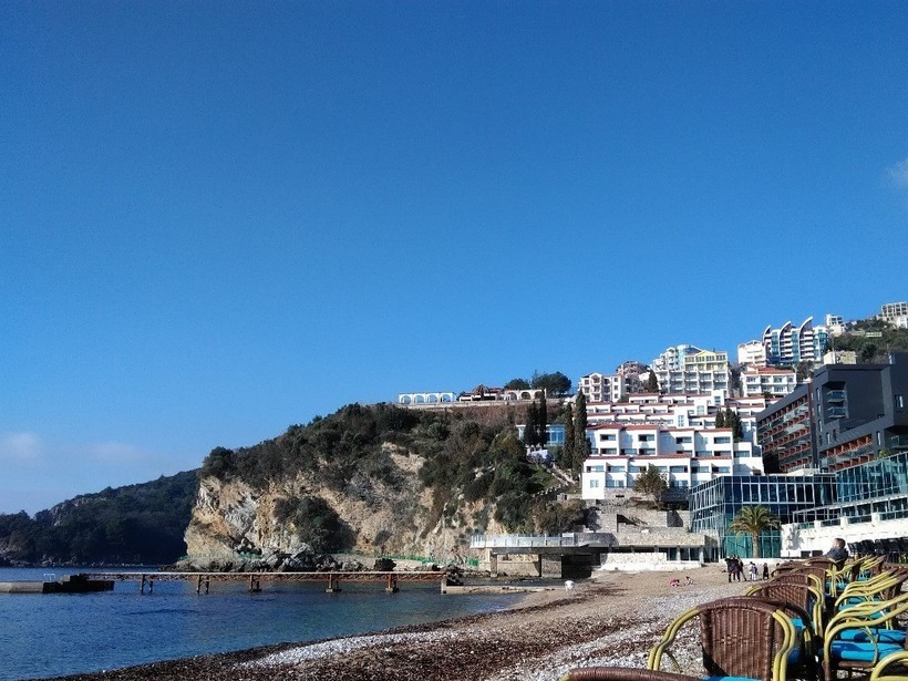 Не ожидала, что зимой мне тут будет насколько комфортно отдыхать. Курорт по прибытии встретил погожей погодой и температурой +10 градусов. Единственное, немного напрягал пронизывающий ветер, сырость и утренний туман. Утром мне всегда казалось: вот-вот начнется дождик... Но я ошибалась. По ощущениям, здешняя погодка напоминала раннюю весну, но никак не лютую зимушку. С наступлением вечера становилось холодно и зябко. Температура падала до +5. Прогулки на свежем воздухе радости не приносили. Трижды за отпуск я попадала под проливной дождь. Город в миг становился серым... Удивительно, но осадки тут могут идти целый день. Продолжительность светового дня в Будве 11 часов. Смеркается рано. Непроглядная ночь опускается после 16.30.