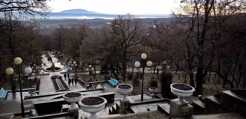 Здешний климат я оценила! Мне понравилось жить в такой зиме. Да-да, зима тут относительно остальных регионов теплая и солнечная. Температура в дневное время держалась на отметке +2 градуса. Плюс облачные дни я могу на пальцах пересчитать. Чаще всего светило солнышко... Да, ветер периодически поднимался, но с морозом, гололедицей и слякотью его не сравнить. В вечернее время некий дискомфорт мне приносила чрезмерная сырость. Да и температура снижалась после заката до –1. Снежные дни в Железноводске также не исключение. Но не успевал снег пойти, как тут же таял. Световой день продолжает сокращаться, всего 9 часов.