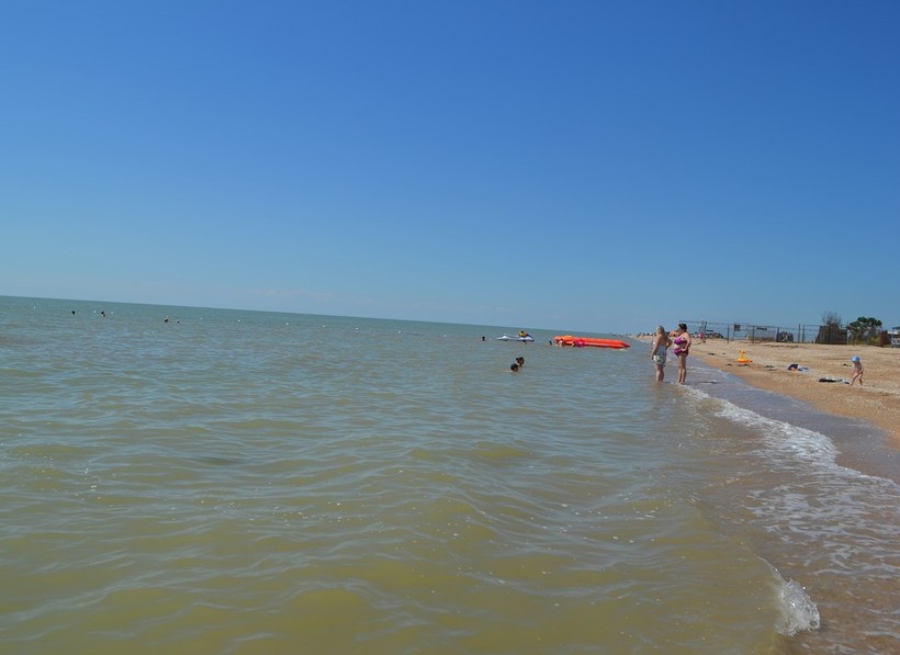 Большая часть отдыхающих уезжает на учёбу, работу, поэтому на пляжах уже нет столпотворений. Я была удивлена, что Азовское море до сих пор оставалось вполне тёплым — 22°C. Я с удовольствием проводила много времени в воде. После принятия солнечных ванн было просто жизненно необходимо окунуться в прохладную морскую воду потому, что солнце прогревает не только тело, но и воздух. Чаще всего днём было 28-30°C тепла.