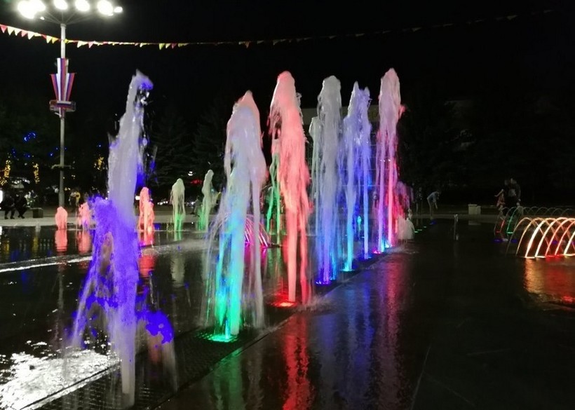В мае начинает работать знаменитый Ессентукский поющий фонтан. Днем достопримечательность никому неинтересна, а вечером фонтанчик подсвечивают, играет музончик.