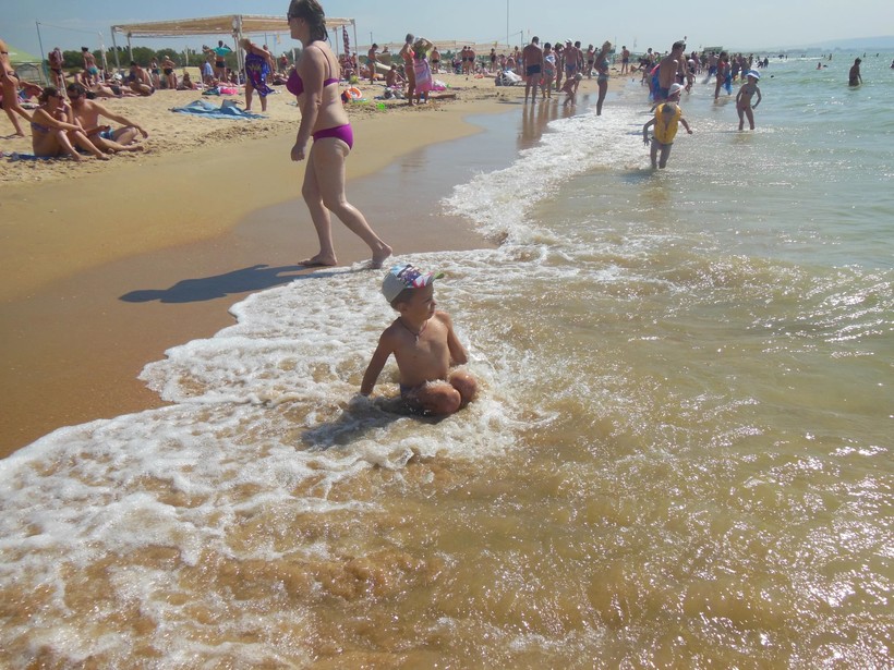 Погода просто супер — 28-29°C днём и 19-21°C в вечернее время суток. Чёрное море прогревается до 22 градусов, поэтому готовьте купальные костюмы, сланцы и панамки. Какое же удовольствие купаться и загорать! Водичка чистая и прозрачная! Если станет скучно, то обратите внимание на развлечения, представленные на каждом пляже. Мне приглянулись следующие: