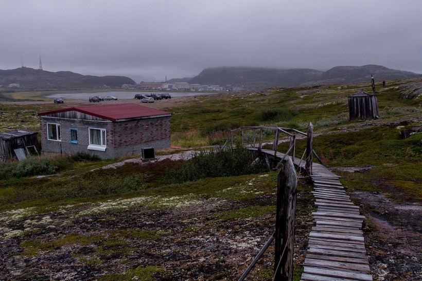 Этот поселок расположен на побережье Северного Ледовитого океана. Температура воздуха всю неделю моего отпуска держалась на отметке +10 днем и +6 ночью. Дул холодный ветер. Температура воды в Баренцевом море составляла +6 градусов: на ощупь она была ледяной.