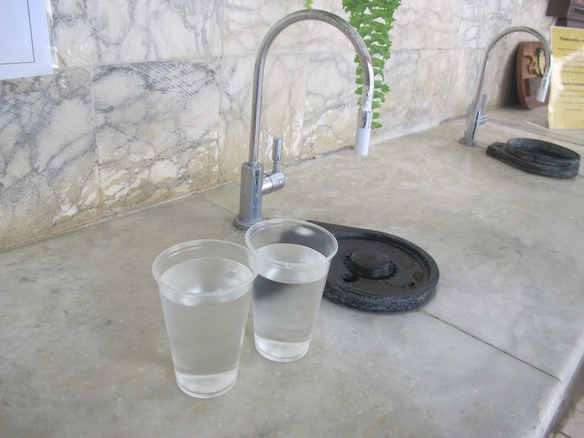 Минеральную воду давали и в санатории, но в самой питьевой галерее она вкуснее. Вода в бювет поступает одновременно из трех природных источников, и я дегустировала абсолютно всё. Питьевая галерея расположена на берегу горной реки Псекупс, где даже ветреной весной чувствуется устойчивый запах сероводорода, но по заверению санаторных врачей он полезен!