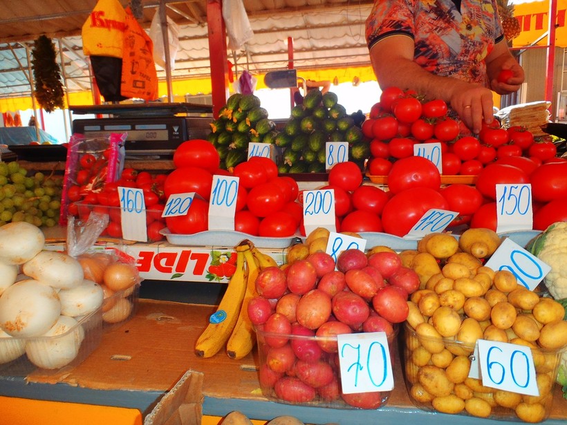 Если прогуляться по местному рынку, то становится понятно, что можно прожить чисто на овощах, фруктах, ягодах. Прилавки завалены душистой зеленью, подходящей для большинства салатов. Купите молодой картофель, если у вас есть условия для приготовления пищи (я проживала в частном секторе и у меня была небольшая кухонька). Но самый смак — это: