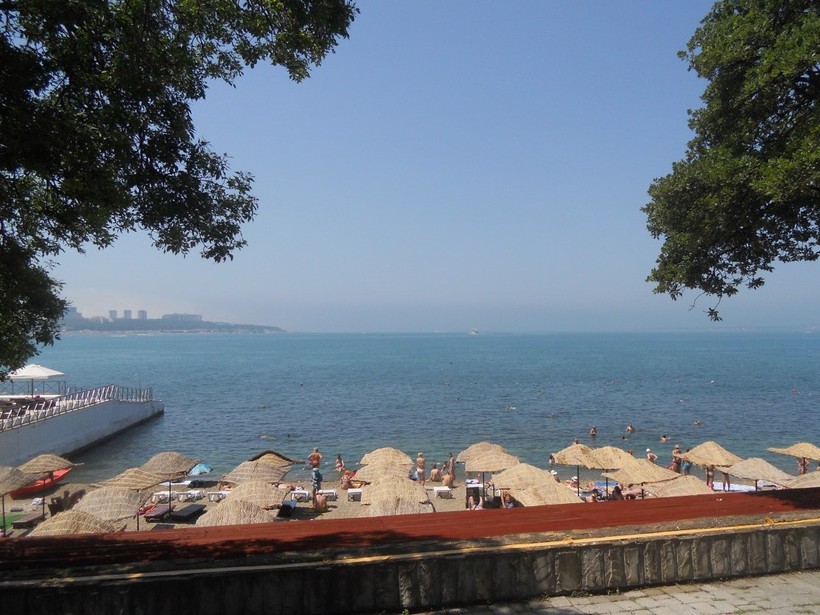 Чёрное море ещё достаточно прохладное. Вода примерно 20 градусов, поэтому долго не покупаешься. Взяв лежак, можно неплохо позагорать под южным солнцем. Главное тщательно смазывать кожу кремом, чтобы не сгореть. Готовьтесь бегать в ближайший киоск, чтобы купить холодной воды. Пить хочется постоянно.