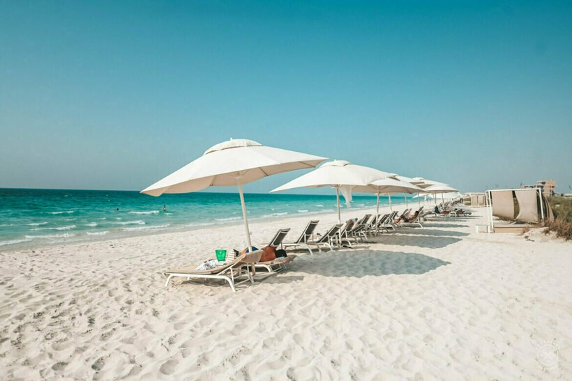 Расположен в самом большом эмирате — в Абу-Даби. Здесь прекрасно развита инфраструктура, много кафе и ресторанов, чисто. Протяженность набережной — 5 км, волн в море почти нет. На пляже можно арендовать инвентарь, покататься на аттракционах. Также есть платная и бесплатная зоны, специальная зона для семей с детьми. Пляж имеет награду «Голубой флаг».