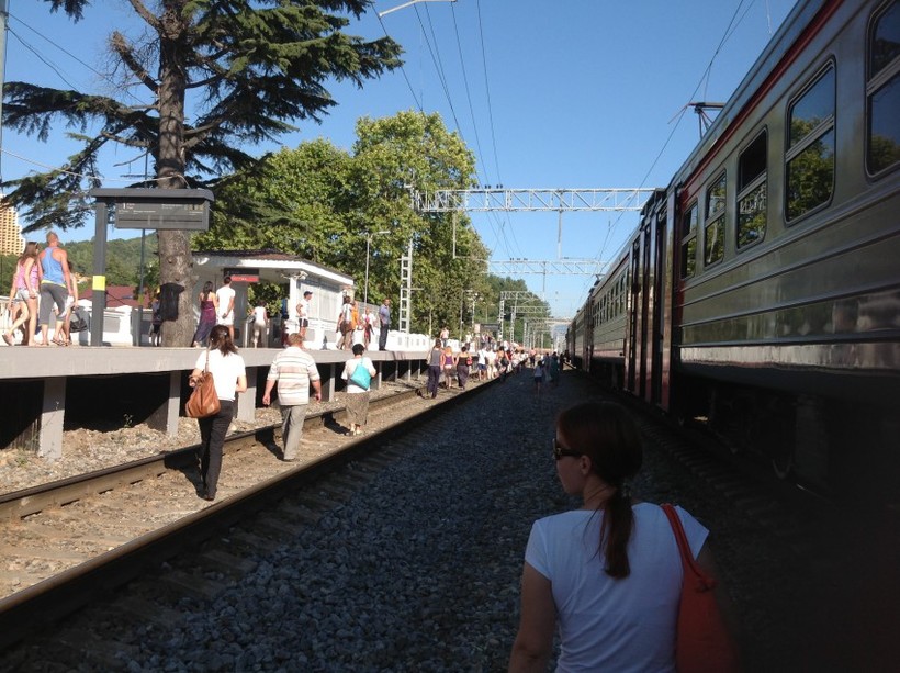 Высадившись на платформе Дагомыса, приятно удивилась: даже на вокзале произрастает огромное количество зелени. Деревья, кустарники — все буйно цвело. Аромат стоял потрясающий. Погода радовала, солнышко ласково пригревало. Днем доходило до +23 градусов. Ежедневно ходила на пляж загорать, дышать морским бризом. Вода казалась холодной, купаться желания не возникало, лишь иногда ноги ополаскивала да лицо умывала — полезно для кожи.