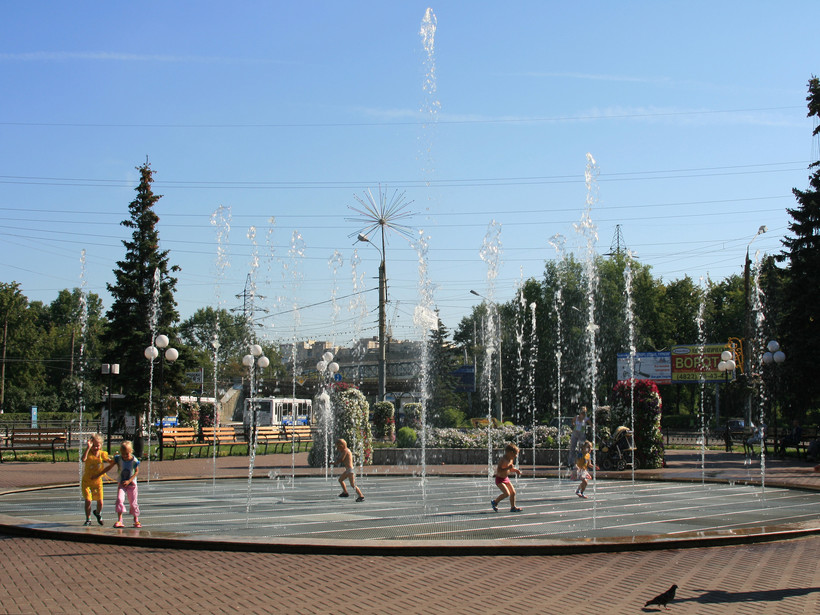 - Фонтан на Комсомольской площади - его особенность в том, что это фактически фонтан-аттракцион. Вокруг установлены колонки, и фонтан бьет водой в такт музыке, максимально выбрасывая струи на 15м. Вечером к музыке присоединяется динамичная подсветка, поэтому лучше на его посещение выделите вечер, после того, как нагуляетесь.