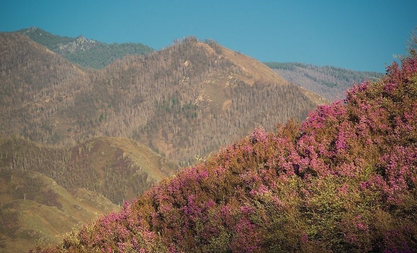 Сезонных овощей и фруктов в это время нет, но я попробовала удивительный салат из лепестков маральника и сметаны. А вот мед багульника ядовит, его не употребляют в пищу.